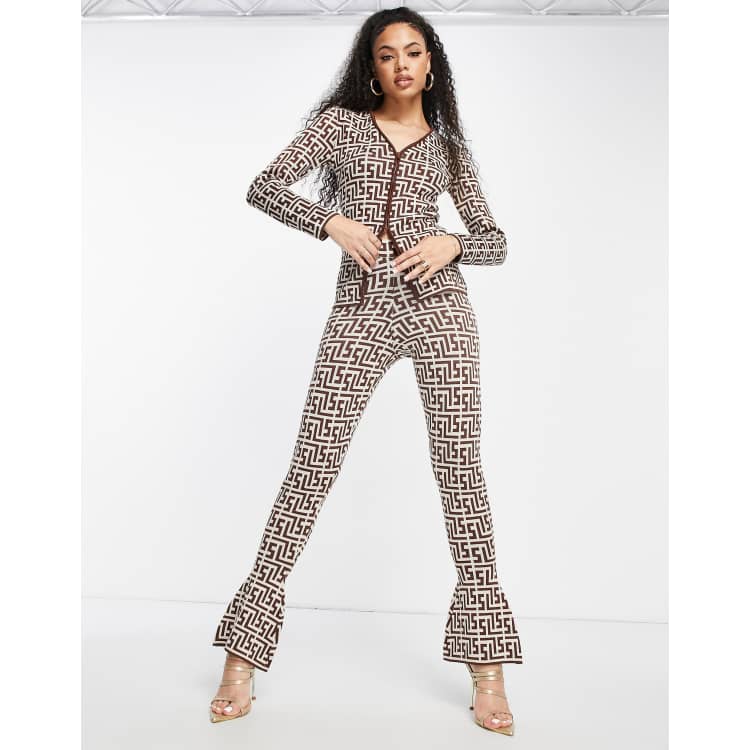 Simmi Enge Schlaghose Mit Geometrischem Muster In Braun Kombiteil Asos